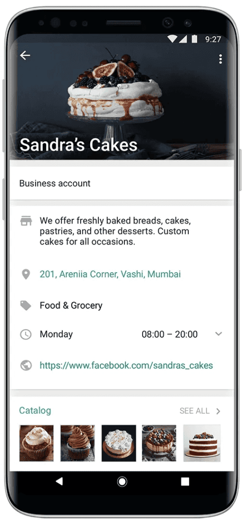 Think of it as your mini business card inside WhatsApp. When someone opens your profile, they can see details such as your business name, description, address, website, working hours, email, and product catalog. This helps customers quickly verify that they are speaking with a legitimate business and not just a random phone number.