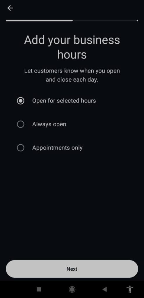 WhatsApp allows you to set different types of schedules, such as specific opening hours, always available, or appointment-based availability.