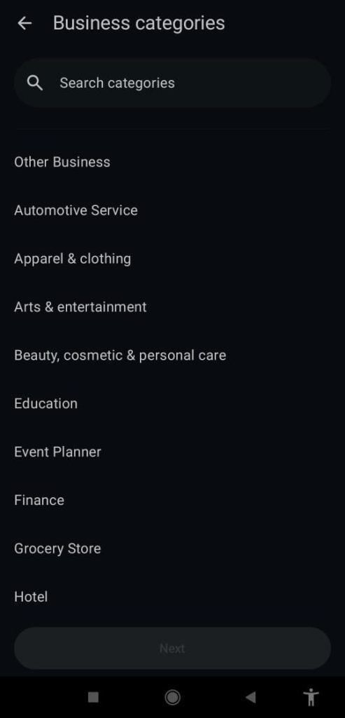 Pick the category that best describes your business. This small detail can make your profile clearer and more professional, especially when customers view your business information for the first time.