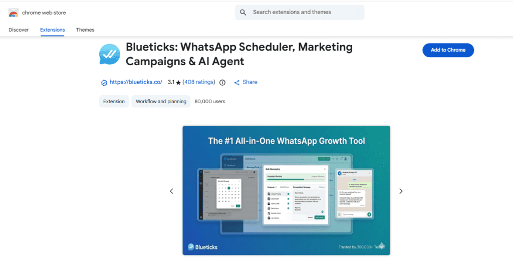 One commonly used option is the Blueticks extension, which can be installed from the Chrome Web Store. Once installed, it integrates with WhatsApp Web and allows you to plan messages in advance so they are sent automatically at a specific time.