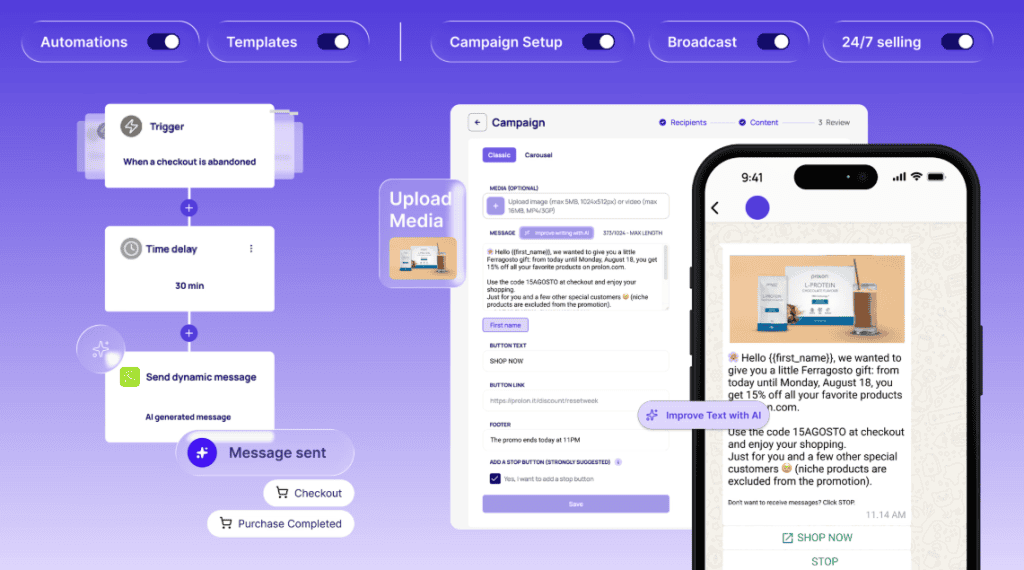 If you’re looking to automate product recommendations, upsells, and customer queries without relying heavily on human agents, its AI shopping assistant can be valuable. - WhatsApp is your primary revenue channel