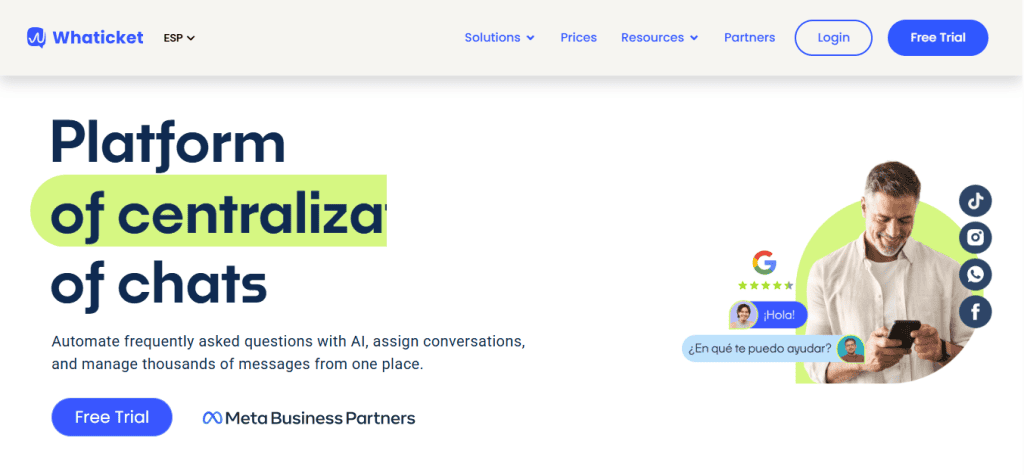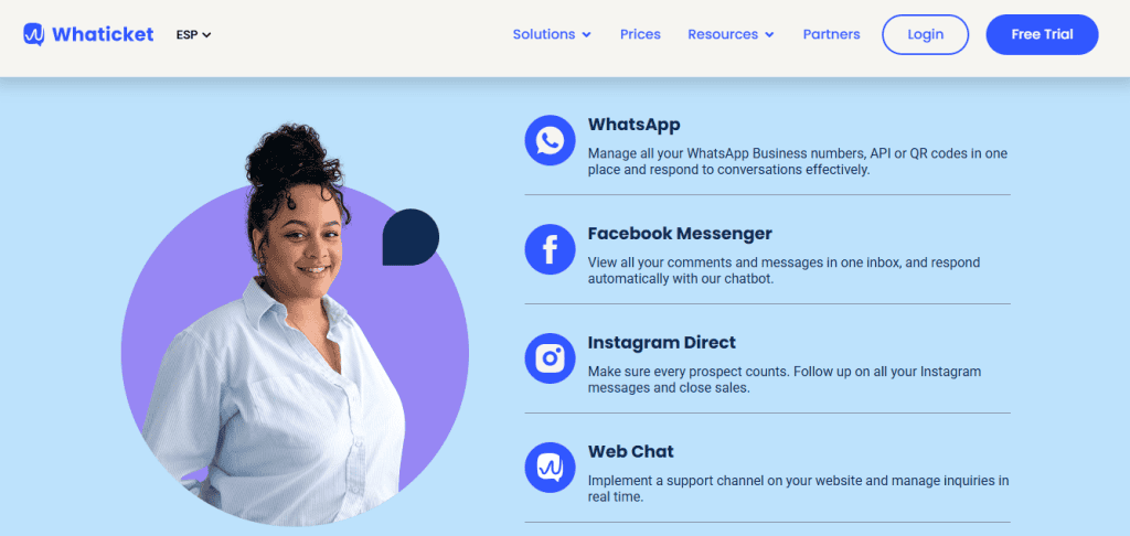 Whaticket supports WhatsApp and includes Facebook and Instagram integrations, though some of these are still evolving.