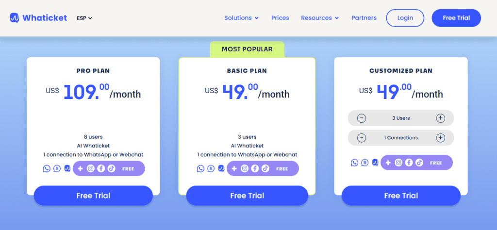 Whaticket pricing looks straightforward at first glance, but there are a few layers to understand, especially when you factor in add-ons like extra connections and campaign credits. The platform offers three main plans, along with a free trial to get started.